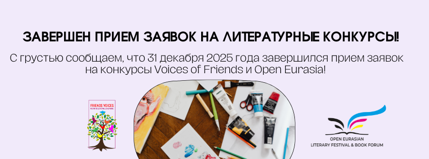 С грустью сообщаем, что 31 декабря 2025 года завершился прием заявок на конкурсы Voices of Friends и Open Eurasia! Этот год был полон вдохновения, открытий и возможностей для каждого из вас, стремящихся поделиться своим талантом и создать нечто удивительное.